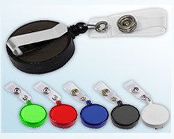 Porta-Credencial yo-yo con extensor y clip metálico de sujeción, retráctil, tamaño: Ø 3.2 x 1.1 cm. COLORES: Blanco, Azul Traslúcido, Rojo Traslúcido, Verde Traslúcido, Negro Traslúcido.