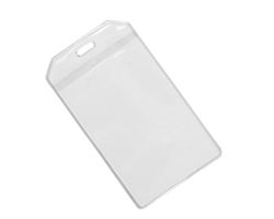 Porta-Credencial Grande de PVC Clear, para Credenciales de 9.2 x 13.2 cm. Visibilidad por ambos lados. Presentación Vertical. Tamaño real: 10.5 x 16 cm.