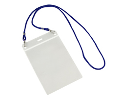 Porta-Credencial Grande de PVC Clear, incluye cordón azul para colgar. Presentación Formato Vertical. Tamaño: Porta-Credencial 10.5 x 15.5 cm Cordón azul.