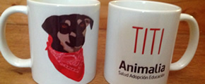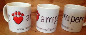 Tazón blanco estampado para grupo Animalia de la Universidad Catolica.